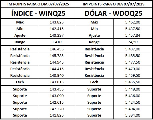 Caso o índice rompa a resistência em 141.660, o movimento de alta poderá ser intensificado pela entrada de fluxo comprador, com alvos projetados em 142.935, 144.580 e objetivo mais longo em 145.900 pontos.