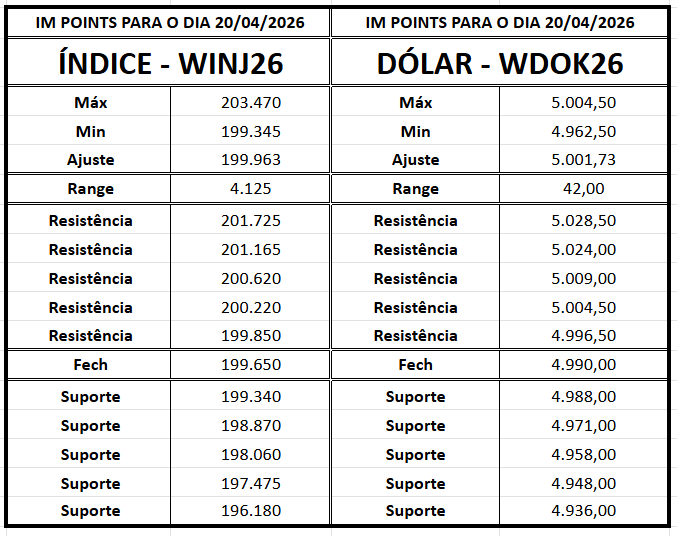 Para retomada da alta, será importante romper a faixa de resistência em 196.430/197.600 pontos, o que pode abrir caminho para avanços até 198.665/199.354 pontos. Acima disso, os próximos objetivos ficam em 200.000/201.155 pontos.