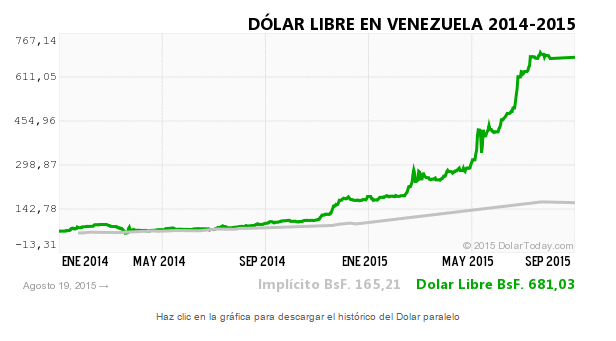 Veja abaixo o gráfico da cotação do dólar em bolívares segundo o site dolar today: