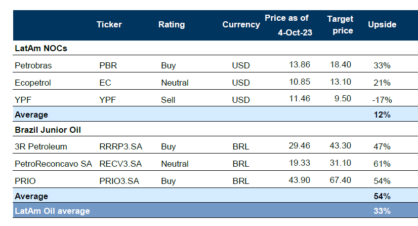 Além disso, espera que a estatal anuncie US$ 3,5 bilhões em dividendos junto com os resultados do 3T, de acordo com a política atualizada de remuneração aos acionistas da empresa de distribuição de 45% de seu fluxo de caixa livre. Além disso, vê capacidade para um dividendo potencial de até US$ 7 bilhões (para um dividend yield de 8%) com os números a serem apresentados no 4T23.