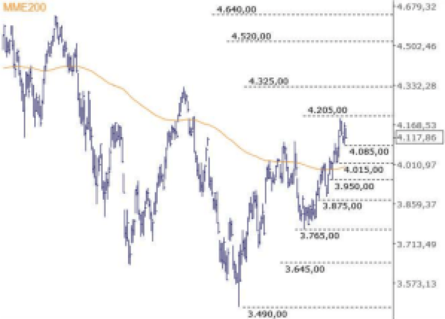 Para Lima, no curtíssimo prazo, o ideal seria aguardar uma correção até a média curta no patamar dos 4.000 pontos, para considerar uma compra, “mantendo atenção para os próximos pontos acima de resistência em 4.320 (topo deixado 16 de agosto de 2022) e em 4.630 (topo deixado em 29 de março de 2022).”