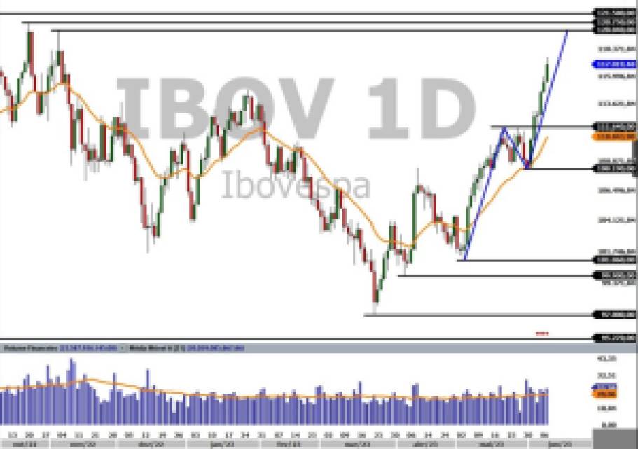 Segundo grafistas, este patamar já começa a possibilitar ao Ibovespa mirar os 120 mil pontos, importante região de resistência.
