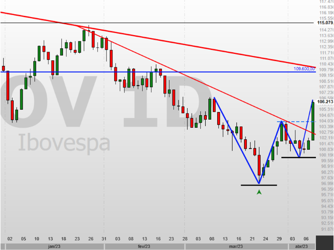 Para baixo, segundo ele, o Ibovespa deixou suportes em 104.085 e 101.850 pontos.