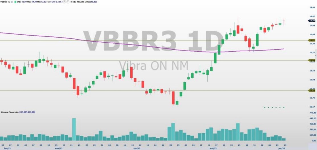As ações de Vibra (VBBR3) vem com ganhos tanto em junho, de 10%, quanto no acumulado de 2023, de mais 13,8%, com seu valor tendo sido influenciado recentemente por informações sobre compras estratégicas de participação de seu capital.