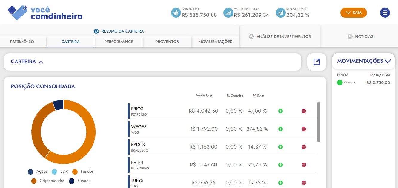 - Ver o desempenho da sua carteira