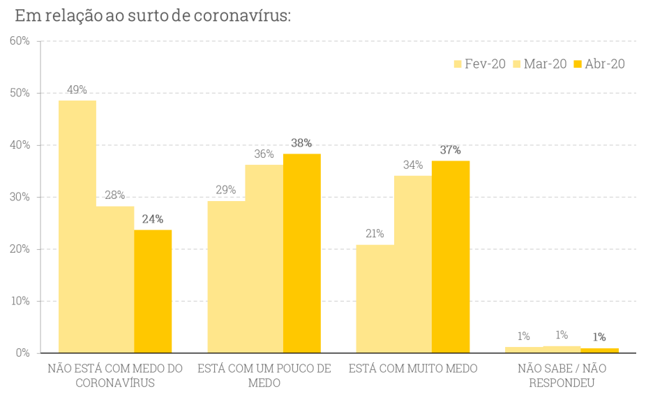Ainda, o grupo de pessoas que declarou que “não está com medo do coronavírus” foi para 24%, enquanto em março era de 28%.