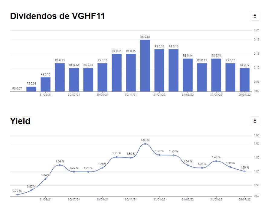 Na próxima sexta-feira (5), o Valora Hedge Fund distribuirá R$ 0,12 por cota – valor referente às receitas do mês passado –, montante equivalente a um retorno mensal de 1,20%. Em dezembro de 2021, o fundo alcançou um dividend yield mensal de 1,80%, conforme mostra a página do Valora Hedge Fund no InfoMoney.