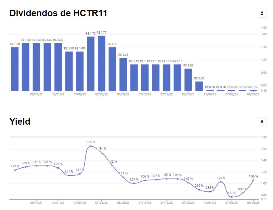 O fundo também teve de reduzir dividendos na virada do ano, saindo de valores acima de R$ 1,10 por cota em 2022 para os atuais R$ 0,50.
