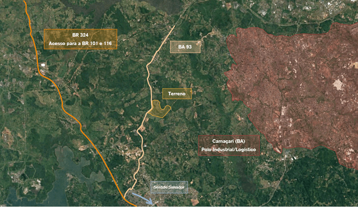 O terreno fica na rodovia BA-093, perto do polo industrial e logístico de Camaçari, e foi adquirido no modelo de permuta física, por Sociedades de Propósito Específico (SPEs) que têm o fundo como sócio majoritário, sem desembolso de dinheiro, segundo fato relevante divulgado ao mercado.
