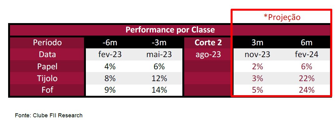 “De maneira semelhante aos ciclos anteriores, nos meses que precederam a reunião do Copom em agosto, os fundos de fundos (FoFs) e fundos de ‘tijolo’ apresentaram os maiores ganhos”, aponta o diretor do Clube FII. “Destaque especial para o segmento de shopping centers, que teve um aumento de 14% nos seis meses anteriores e 15% nos três meses anteriores ao corte da taxa Selic”, completa.