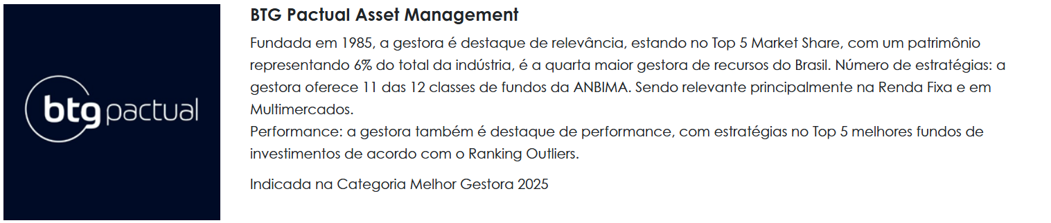 Em um mercado que cresce em diversidade de estratégias, produtos e casas gestoras, o prêmio busca reconhecer quem entrega valor real aos investidores e se destaca em performance, visão de mercado e construção de longo prazo.