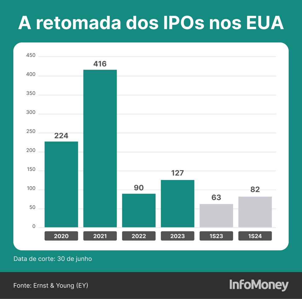 Após um período de “vacas magras”, as ofertas públicas iniciais de ações (IPOs, na sigla em inglês) nos Estados Unidos começaram a pegar no tranco. O país movimentou US$ 18,6 bilhões em 82 novas ofertas no primeiro semestre de 2024, volume 83% superior ao registrado no mesmo período de 2023, segundo dados publicados neste mês pela Ernst & Young (EY).