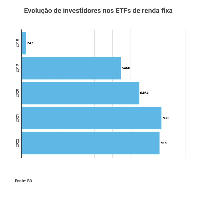 Segundo o último Boletim mensal de ETFs da B3, os fundos de índice de renda fixa reuniam até fevereiro 7.578 investidores, um número pequeno em comparação com o universo de 529.352 investidores que atualmente utilizam fundos de índices para diversificar as carteiras.