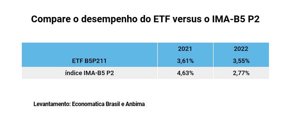 Para o investidor que ainda prefere prazos curtos, mas com exposição à inflação e a possibilidade de obter um ganho real, os especialistas apontam o ETF B5P211 como alternativa.