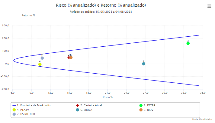 O banco de dados consolidado da Comdinheiro reúne todas as informações do mercado de ações, fundos e renda fixa – que são processados em um dos maiores parques tecnológicos do país, localizado em São Paulo. Dessa maneira, o administrador pode, além de conhecer em detalhes o risco da sua carteira, fazer simulações automatizadas com diferentes ativos em qualquer janela de tempo.