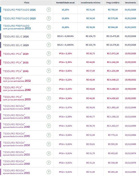 Confira os preços e as taxas dos títulos públicos disponíveis para compra no Tesouro Direto na manhã desta terça-feira (11):