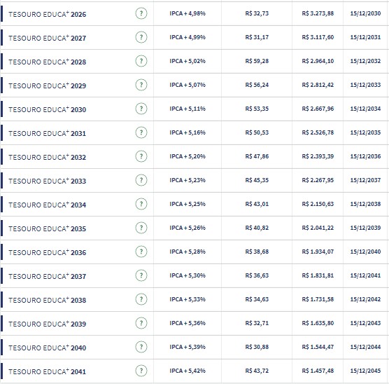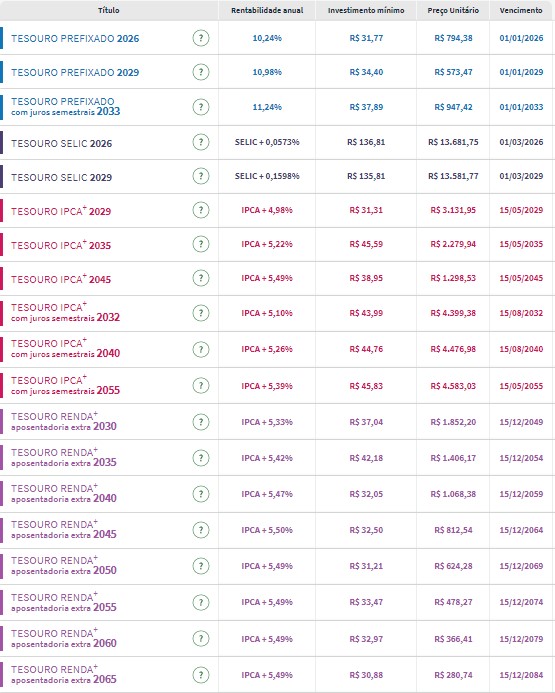 Confira os preços e as taxas dos títulos públicos disponíveis para compra no Tesouro Direto na manhã desta terça-feira (22):