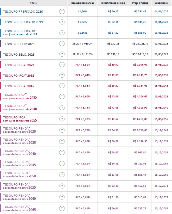 Confira os preços e as taxas dos títulos públicos disponíveis para compra no Tesouro Direto na tarde desta segunda-feira (22):