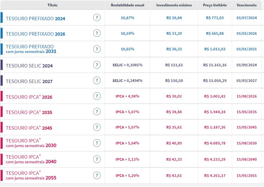 Confira os preços e as taxas de todos os títulos públicos disponíveis para compra no Tesouro Direto que eram oferecidos na tarde desta quinta-feira (16):