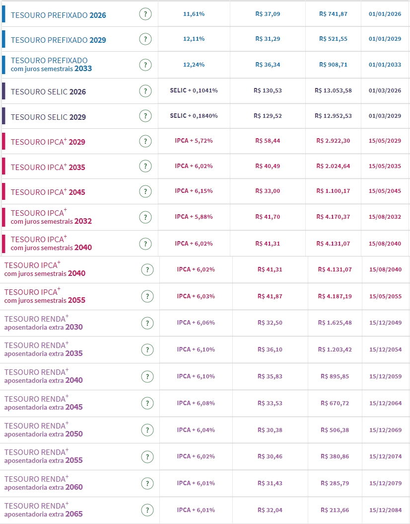 Confira os preços e as taxas dos títulos públicos disponíveis para a compra no Tesouro Direto na tarde desta quinta-feira (13):