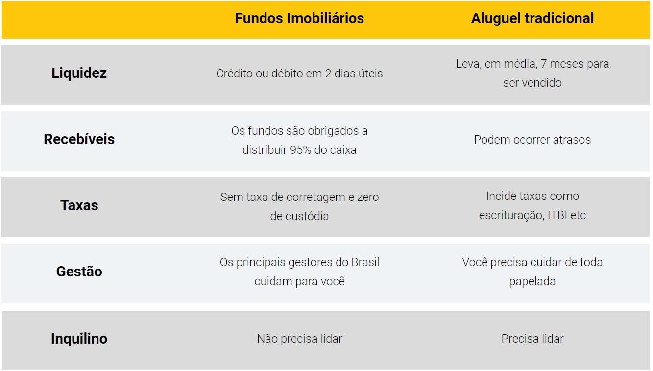 Abaixo, o guia traz algumas vantagens dos Fundos Imobiliários em comparação com o aluguel tradicional.