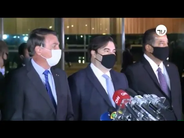 Também estavam presentes no pronunciamento os ministros Paulo Guedes (Economia), Tarcísio Gomes de Freitas (Infraestrutura) e Rogério Marinho (Desenvolvimento Regional), o novo líder do governo na Câmara, Ricardo Barros (PP-PR) e seu antecessor, major Vitor Hugo (PSL-DF), o líder do governo no Congresso Nacional, Eduardo Gomes (MDB-TO), e o líder do “blocão” na Câmara, Arthur Lira (PP-AL).