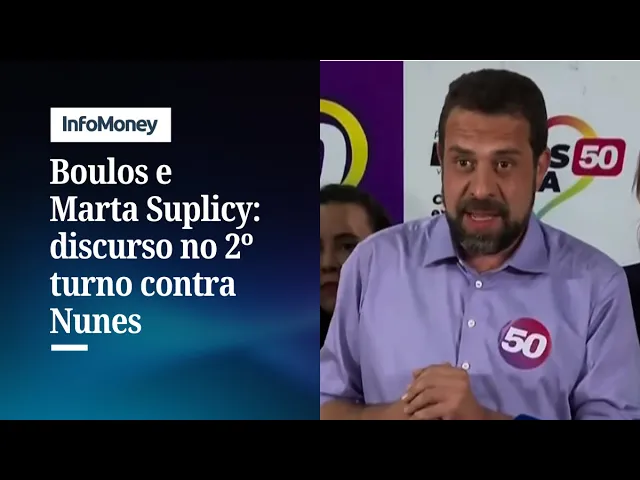 Em discurso ao lado de sua candidata a vice, a ex-prefeita Marta Suplicy (PT), Boulos comemorou a votação obtida no primeiro turno do pleito e reforçou a proximidade de Nunes com o ex-presidente Jair Bolsonaro (PL).