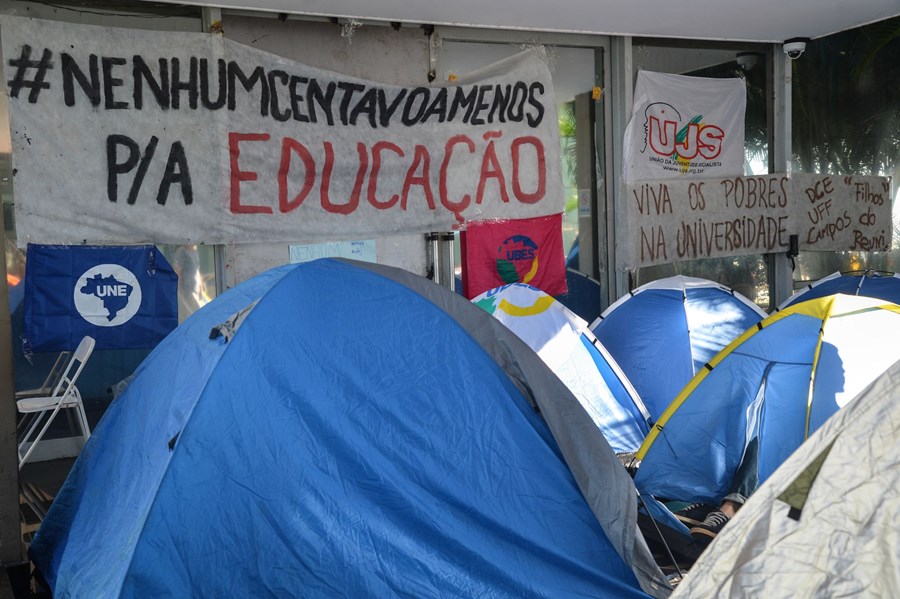 Representantes da União Nacional dos Estudantes (UNE) e da União Brasileira dos Estudantes Secundaristas (Ubes) decidiram hoje (11) acabar com o acampamento montado em frente à sede do Ministério da Fazenda, em Brasília. Eles protestavam por causa dos cortes de verbas na educação em consequência do ajuste fiscal estabelecido pelo governo e a redução da maioridade penal de 18 para 16 anos.