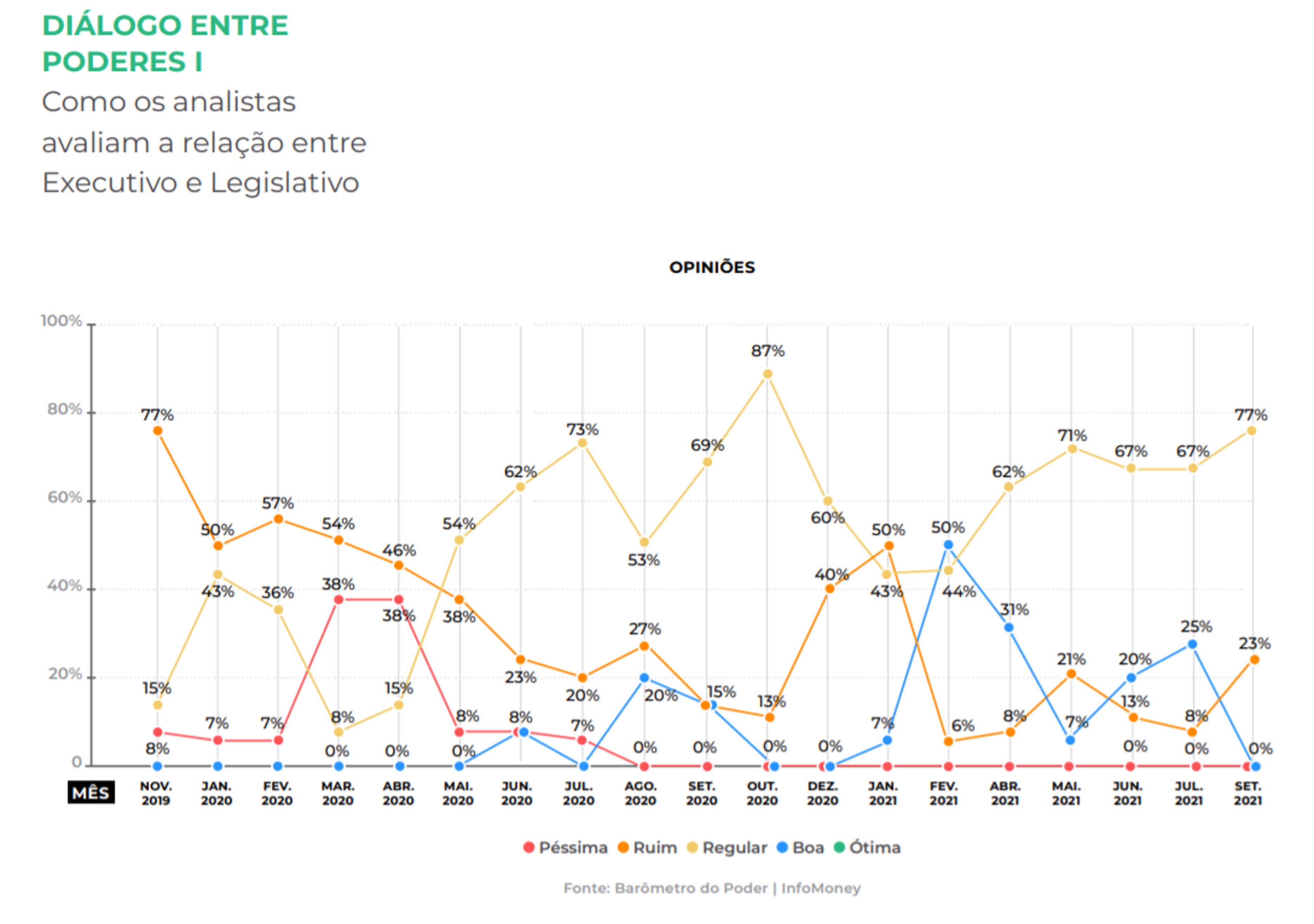 É o que indica a 29ª edição do Barômetro do Poder, iniciativa do InfoMoney que compila mensalmente as avaliações e expectativas de consultorias de análise de risco político e analistas independentes sobre alguns dos assuntos em destaque na política nacional.